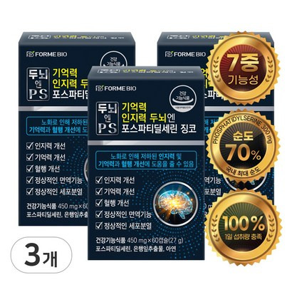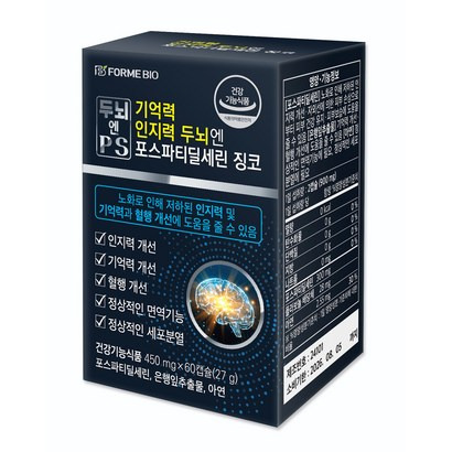 #포스파티딜세린,#뇌영양제,#식약처인증,#두뇌엔,#PS,#기억력,#인지력,#징코,#포미바이오,#60정,#3개,#기타영양제,#리뷰후기