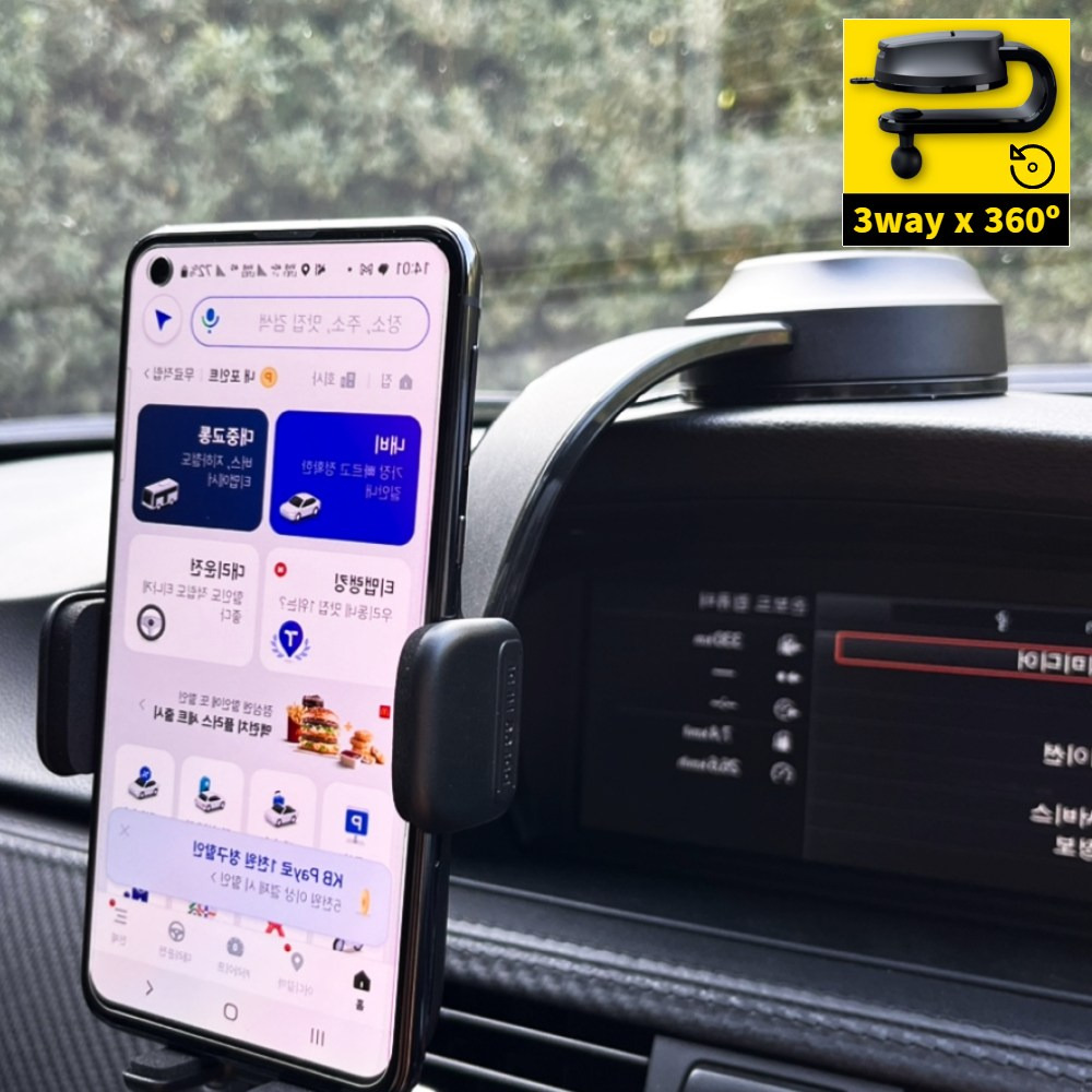 흡착식이라 설치가 간편하고, 차량 대시보드에